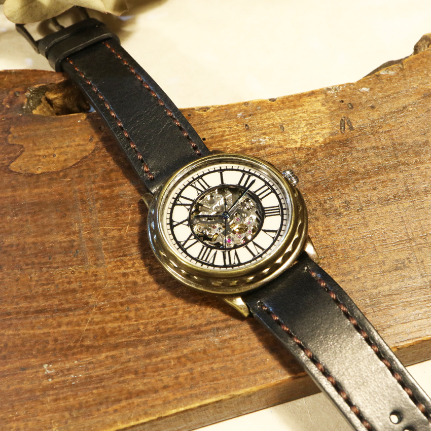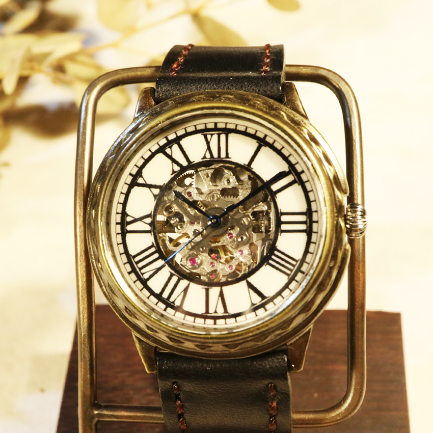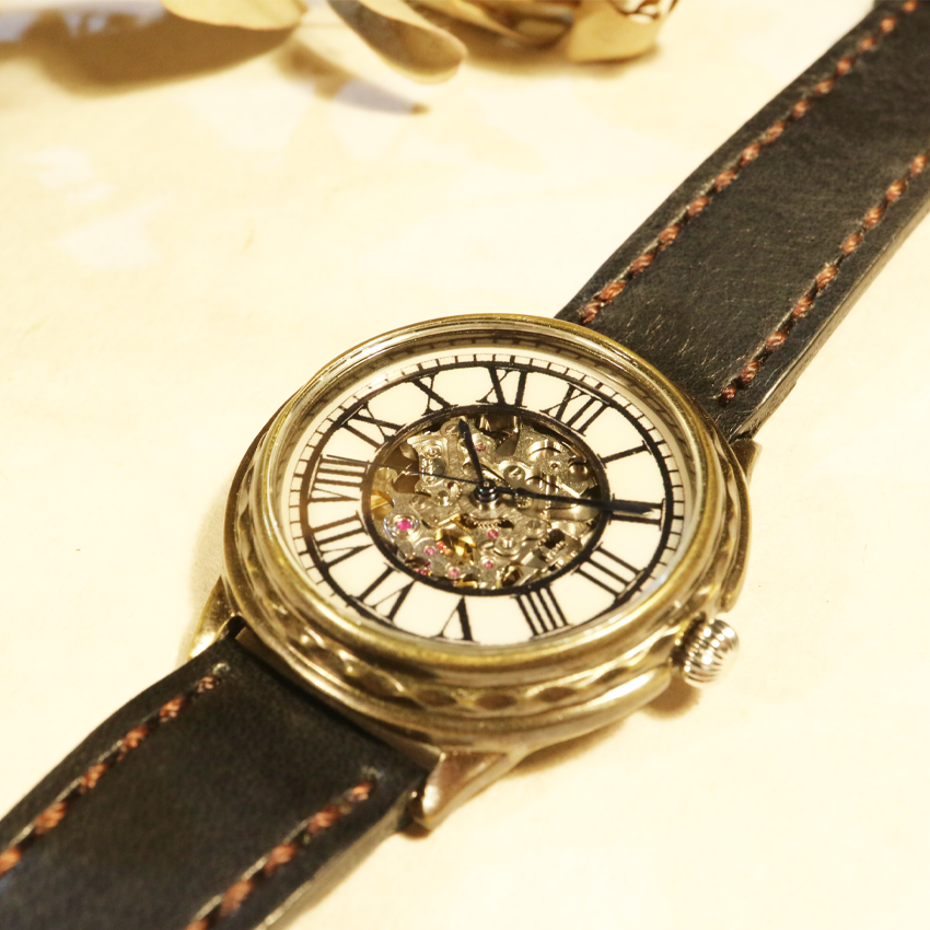 ムーブメントの動きが表からも裏からも見えるスケルトン・シースルーバック仕様。