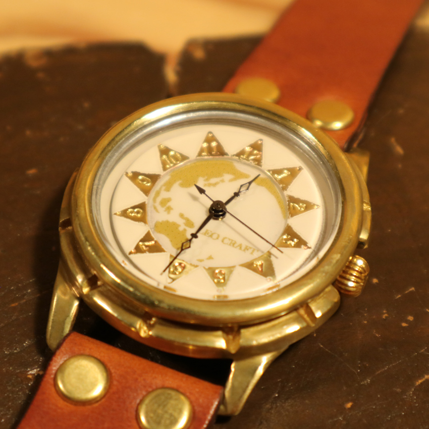 中央に地球、まわりに太陽のインデックスを配置した少し独特な時計。