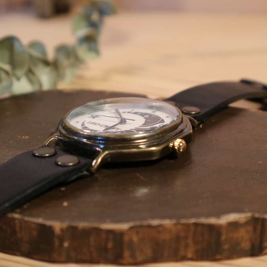 時間は月の動きにも関係しています。 大きな三日月のまわりにインデックスになる星を配置しています。