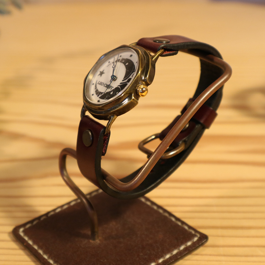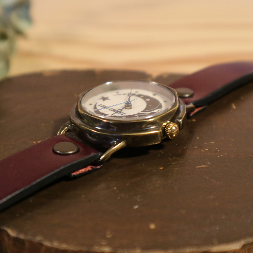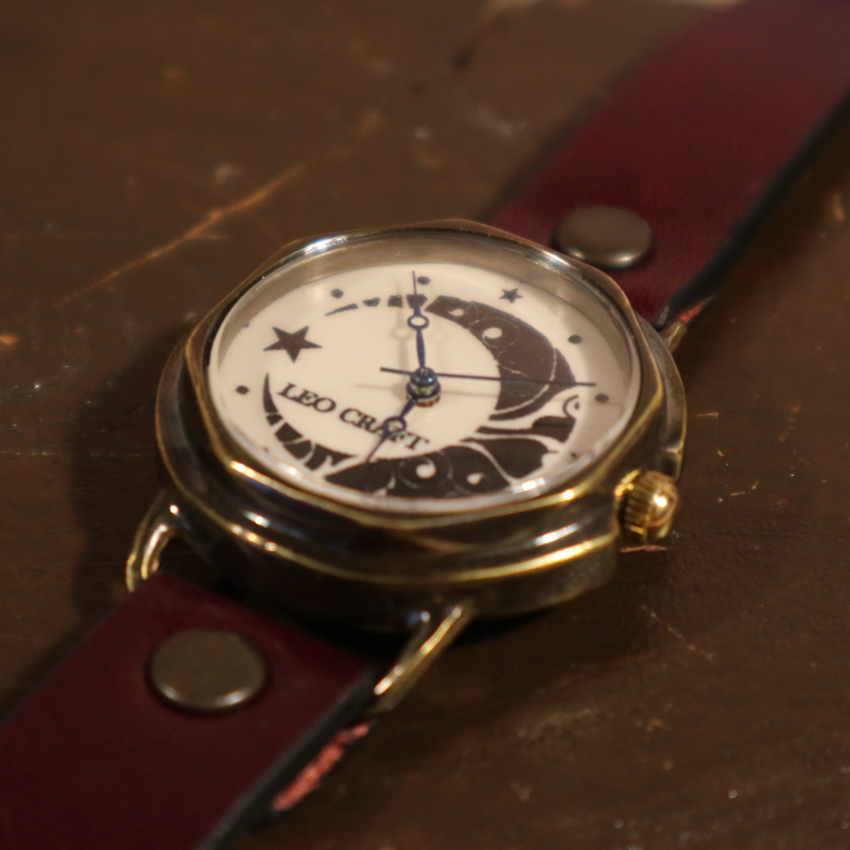 時間は月の動きにも関係しています。 大きな三日月のまわりにインデックスになる星を配置しています。